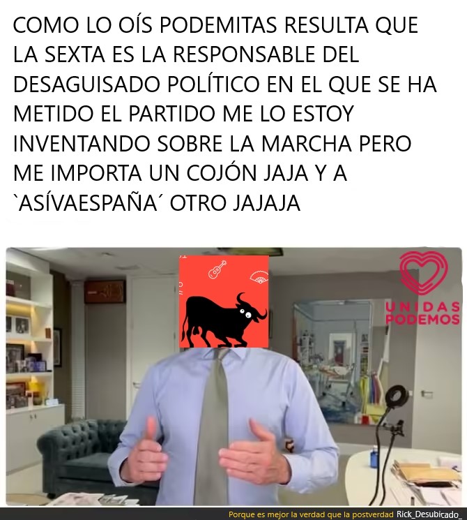 [*5*] tío, te dan pruebas de mierdas y sales a defender lo indefendible con mierdas que ni tú crees que tengan sentido, a soltar tu intento de justificación que no se coge ni con alfileres de turno y a buscar gresca y ahora vas de digno y dices “no esque soy alguien que piensa diferente por no votar a podemos, mimimi” (ni eso he sido capaz de acabar de leer de lo que aburres)